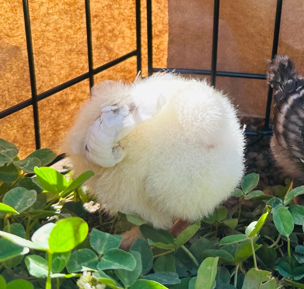 Honey was our biggest chick for a while, but not anymore. She barely has wing feathers.