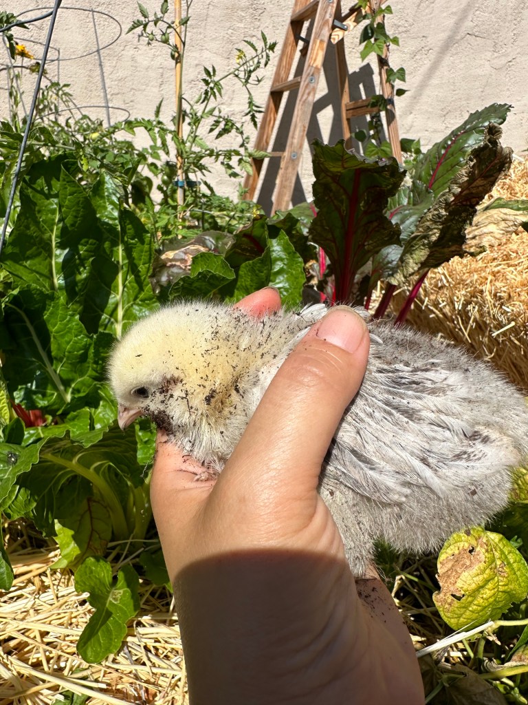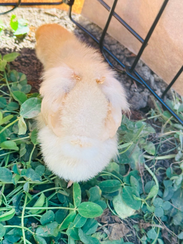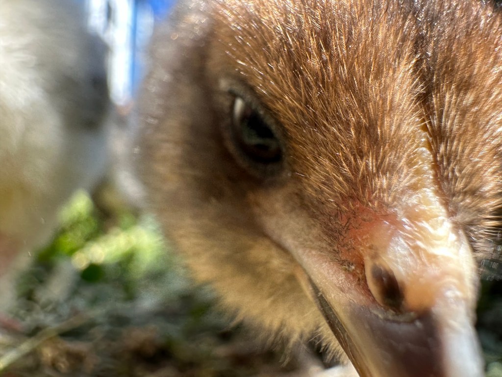 Glory, on the first day I let them roam without a pen enclosure. See those feathers?