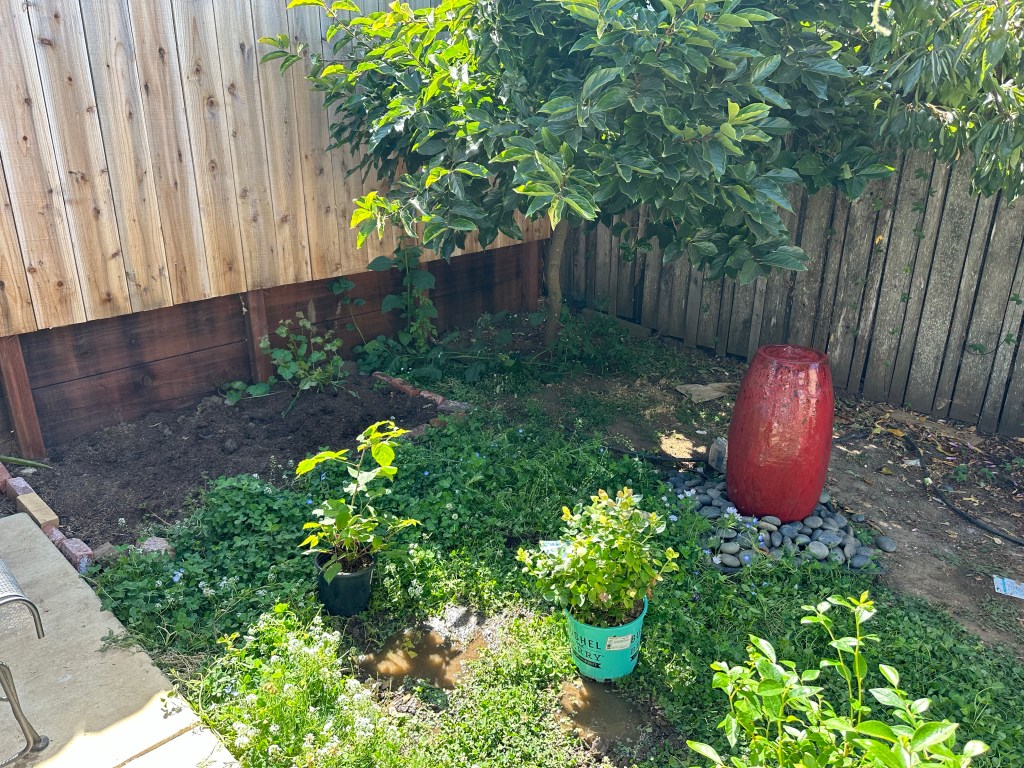 Once we decided to get chickens, we planted additional shrubs in the meadow. Rachel chose raspberries, blackberries, and several kinds of blueberries.