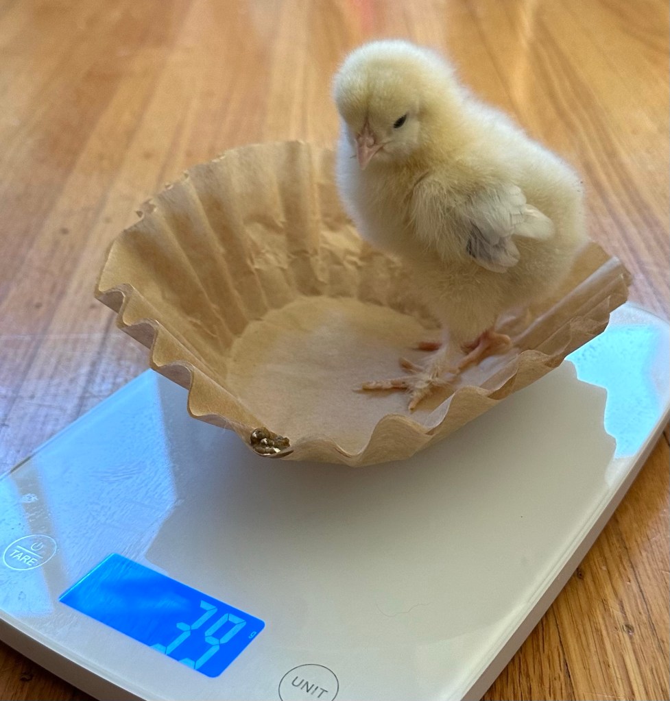 For instance, here’s our tiny bantam, Beyoncé, getting weighed on successive days.