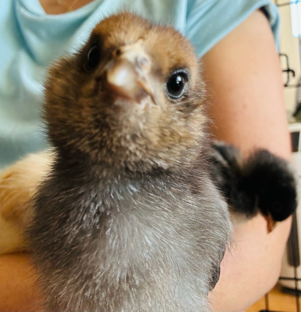 Mercy looks so tender in one of her early photos. She’s still the smallest chick, despite her abundant fluff. It’s hard to believe she’ll be a giant Brahma chicken-the Queen of Chickens-one day!