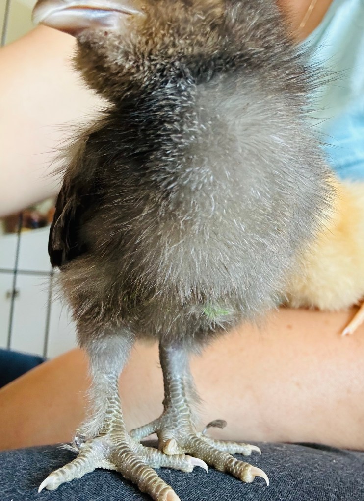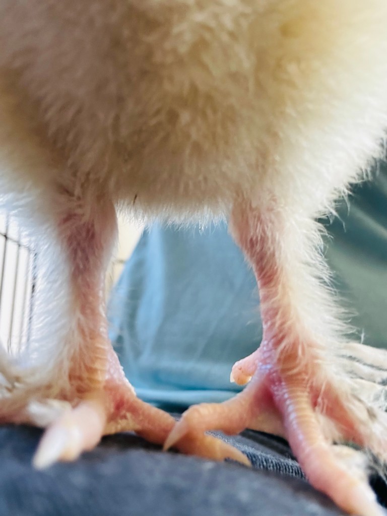 Here’s a close up of little Mercy’s feathered feet. Remember, she’s the one who will grow up to look like she’s wearing pants and snowshoes: