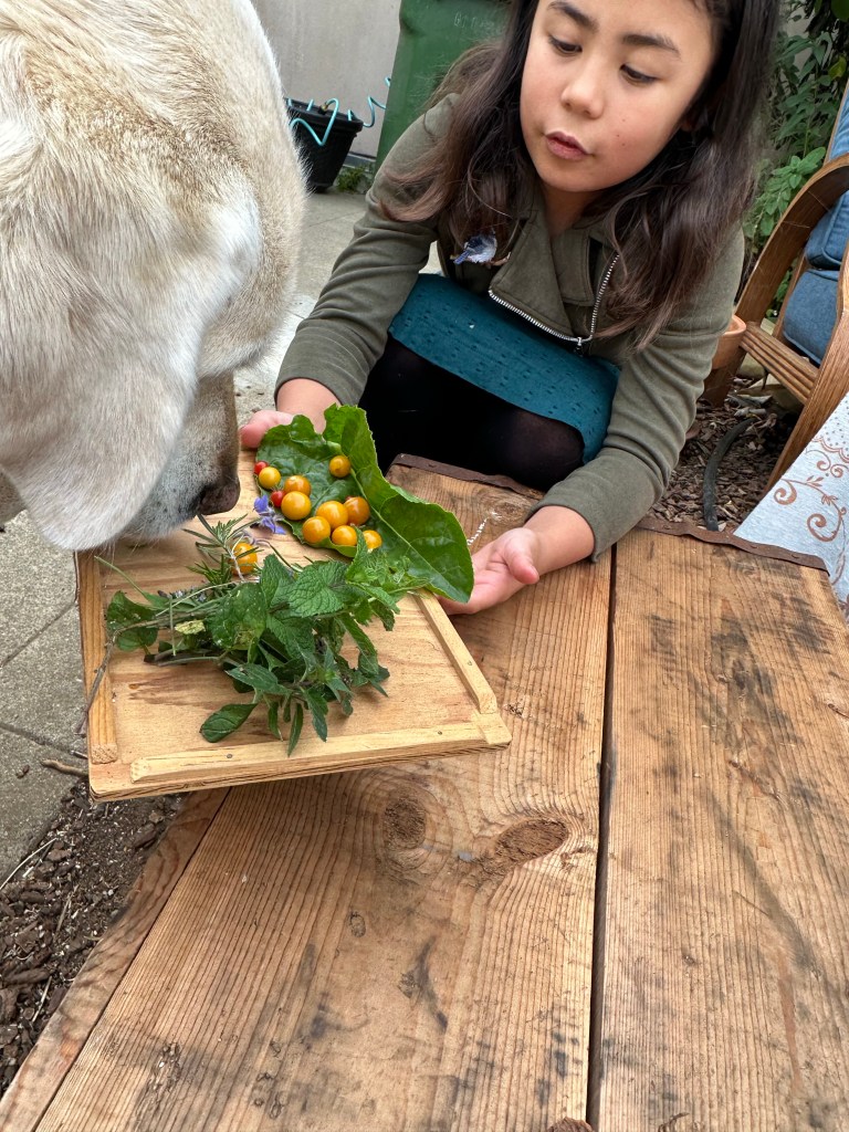 Just to make sure the dogs still feel loved, Rachel made them a tasty tray of garden goodies, like a charcuterie plate.