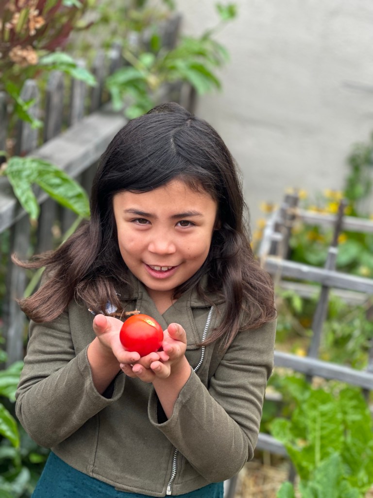Don’t worry, Rachel kept the biggest tomato in the garden for herself.